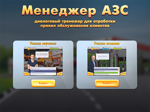 В системе предусмотрено игровое меню с разделением диалоговых ситуаций на этапы. Каждый из этапов содержит свою локацию, персонажей и диалоги - в зависимости от принятых стандартов продаж в компании. Например: