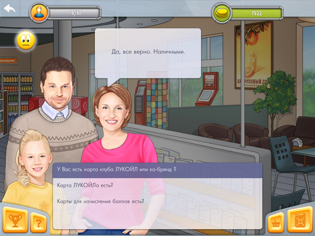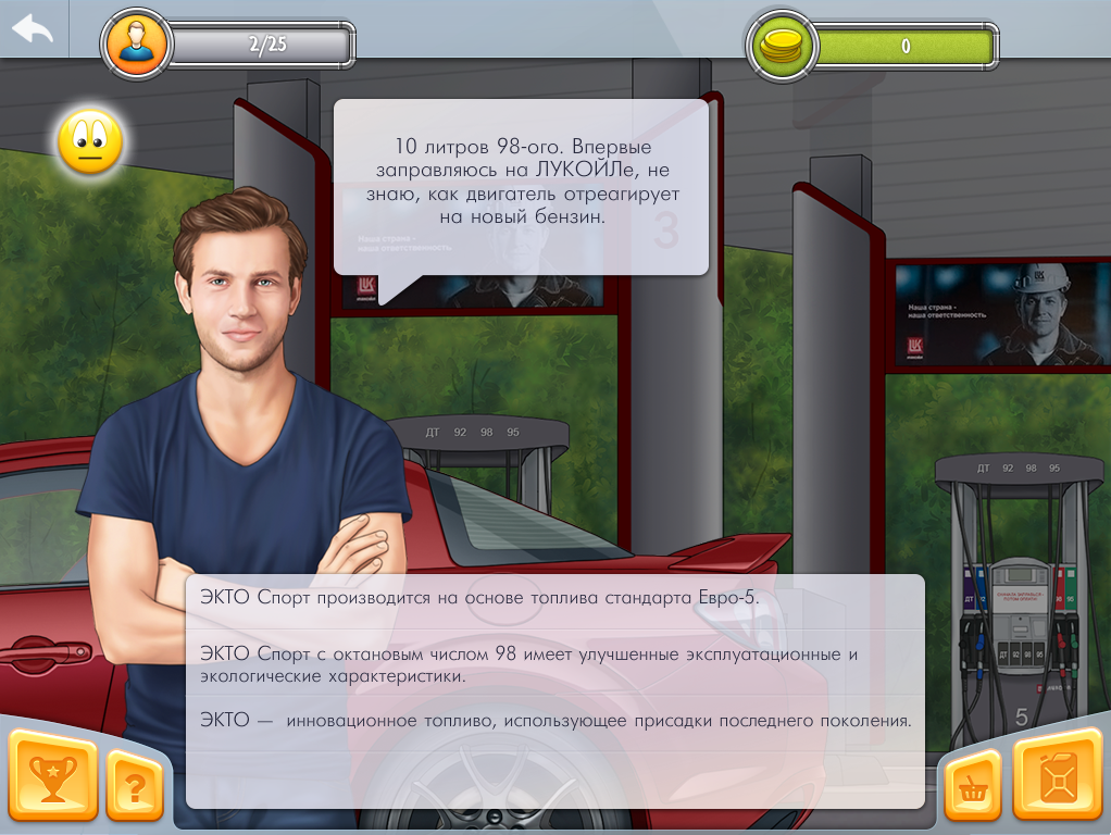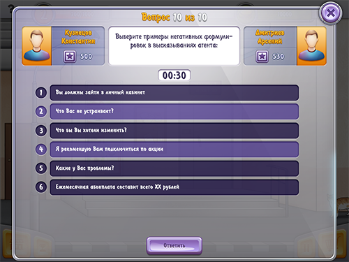 Выбор правильной реплики пользователем оценивается в баллах. При их начислении игрок видит появление «звёздочек». В итоге, баллы по всем диалогам суммируются в общий игровой показатель успешности обучения.