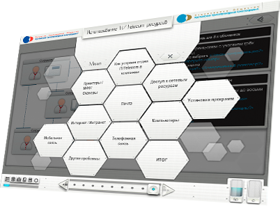 Разработать мультимедийный учебный курс, который бы в понятной форме объяснял сотрудникам процедуры использования IT/Telecom ресурсов компании. После изучения курса сотрудники должны уметь самостоятельно исправлять мелкие проблемы в работе своего компьютера и правильно формулировать запросы в службу технической поддержки для устранения серьезных неполадок.